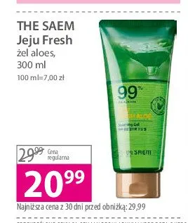 Cena produktu różni się w zależności od wybranego sklepu. Niestety nie posiadamy danych o aktualnych promocjach, jednak wśród archiwalnych ofert Aloesowy żel nawilżający The saem jeju fresh aloe kosztuje od 19,99 zł do 23,99 zł.