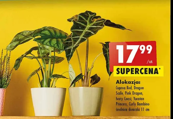 Zastanawiasz si臋, gdzie kupi膰 i ile kosztuje produkt Alokazja curly bambino 11 cm? Regularnie sprawdzamy, czy jest promocja na ten produkt w Biedronka, Lidl, Kaufland, Auchan, Netto, Makro i innych sklepach. Aktualnie nie posiadamy ofert promocyjnych na ten produkt.