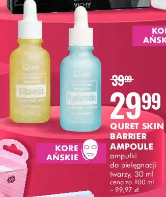 Cena produktu r贸偶ni si臋 w zale偶no艣ci od wybranego sklepu. Niestety nie posiadamy danych o aktualnych promocjach, jednak w艣r贸d archiwalnych ofert Ampu艂ka z kwasem hialuronowym Quret kosztuje od 29,99 z艂.