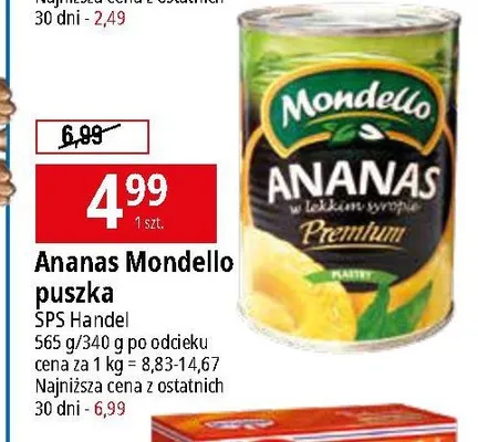Ile kosztuje Ananasy w lekkim syropie Mondello?
