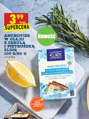 Gdzie mo偶na tanio kupi膰 produkt Anchovies w oleju ro艣linnym z cebul膮 i natk膮 pietruszki Elios?