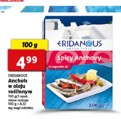 Ile kosztuje Anchovis w pikantnym oleju ro艣linnym Eridanous?