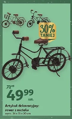 Cena produktu r贸偶ni si臋 w zale偶no艣ci od wybranego sklepu. Niestety nie posiadamy danych o aktualnych promocjach, jednak w艣r贸d archiwalnych ofert Artyku艂 dekoracyjny rower z metalu kosztuje od 49,99 z艂.