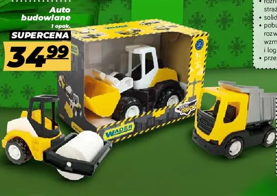 Cena produktu r贸偶ni si臋 w zale偶no艣ci od wybranego sklepu. Niestety nie posiadamy danych o aktualnych promocjach, jednak w艣r贸d archiwalnych ofert Auto budowlane wywrotka Wader kosztuje od 34,99 z艂.