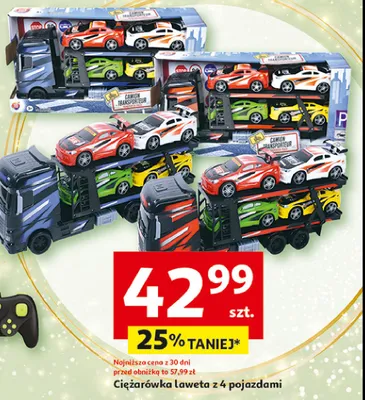 Cena produktu r贸偶ni si臋 w zale偶no艣ci od wybranego sklepu. Niestety nie posiadamy danych o aktualnych promocjach, jednak w艣r贸d archiwalnych ofert Autolaweta z 4 pojazdami kosztuje od 42,99 z艂.