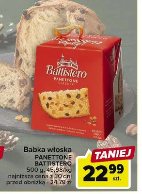 Cena produktu r贸偶ni si臋 w zale偶no艣ci od wybranego sklepu. Niestety nie posiadamy danych o aktualnych promocjach, jednak w艣r贸d archiwalnych ofert Babka battistero panettone Denisfoods kosztuje od 22,99 z艂.
