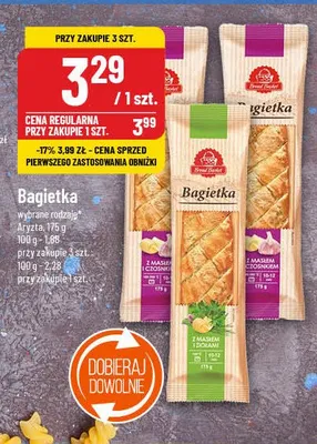 Cena produktu r贸偶ni si臋 w zale偶no艣ci od wybranego sklepu. Produkt Bagietka z mas艂em czosnkowym Bread basket mo偶esz kupi膰 w promocji ju偶 od 3,99 z艂. Najta艅sza oferta, jak膮 mamy w naszej bazie jest z sieci Carrefour. Bagietka z mas艂em czosnkowym Bread basket kosztuje aktualnie 3,99 z艂. Zobacz ofert臋