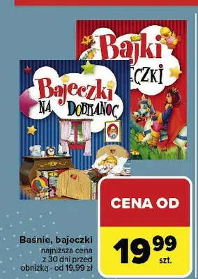 Cena produktu r贸偶ni si臋 w zale偶no艣ci od wybranego sklepu. Niestety nie posiadamy danych o aktualnych promocjach, jednak w艣r贸d archiwalnych ofert Bajki bajeczki kosztuje od 9,99 z艂 do 29,99 z艂.