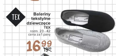 Cena produktu r贸偶ni si臋 w zale偶no艣ci od wybranego sklepu. Niestety nie posiadamy danych o aktualnych promocjach, jednak w艣r贸d archiwalnych ofert Baleriny dziewcz臋ce 23-42 tekstylne Tex kosztuje od 16,99 z艂.