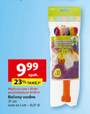 Cena produktu r贸偶ni si臋 w zale偶no艣ci od wybranego sklepu. Niestety nie posiadamy danych o aktualnych promocjach, jednak w艣r贸d archiwalnych ofert Balony wodne kosztuje od 9,49 z艂 do 9,99 z艂.
