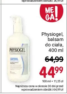 Cena produktu różni się w zależności od wybranego sklepu. Niestety nie posiadamy danych o aktualnych promocjach, jednak wśród archiwalnych ofert Balsam do ciała do skóry suchej i wrażliwej PHYSIOGEL CODZIENNE NAWILŻENIE kosztuje od 44,99 zł.