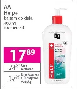 Cena produktu r贸偶ni si臋 w zale偶no艣ci od wybranego sklepu. Niestety nie posiadamy danych o aktualnych promocjach, jednak w艣r贸d archiwalnych ofert Balsam do cia艂a regeneracja dla sk贸ry suchej konopie Aa help kosztuje od 12,99 z艂 do 18,99 z艂.