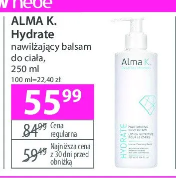 Cena produktu różni się w zależności od wybranego sklepu. Niestety nie posiadamy danych o aktualnych promocjach, jednak wśród archiwalnych ofert Balsam nawilżający do ciała dead sea minerals Alma k kosztuje od 44,99 zł do 84,99 zł.