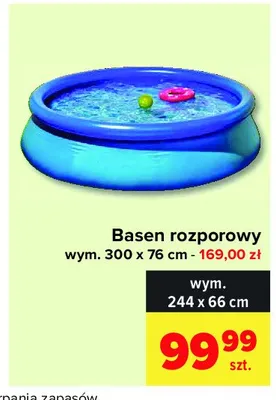 Cena produktu r贸偶ni si臋 w zale偶no艣ci od wybranego sklepu. Niestety nie posiadamy danych o aktualnych promocjach, jednak w艣r贸d archiwalnych ofert Basen rozporowy 244 x 66 cm kosztuje od 99,99 z艂.