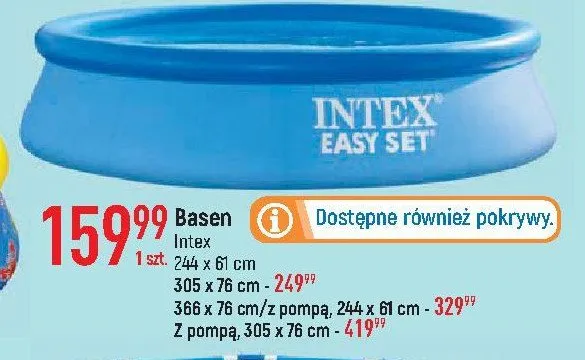 Przeglądaj podobne oferty promocyjne do Basen stelażowy 366 x 76 cm z pompą Intex!