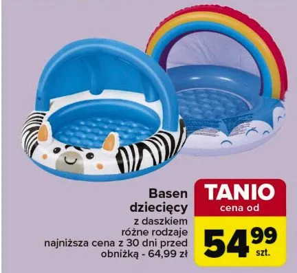Cena produktu r贸偶ni si臋 w zale偶no艣ci od wybranego sklepu. Niestety nie posiadamy danych o aktualnych promocjach, jednak w艣r贸d archiwalnych ofert Basen z daszkiem zebra 97 x 66 cm Bestway kosztuje od 54,99 z艂.