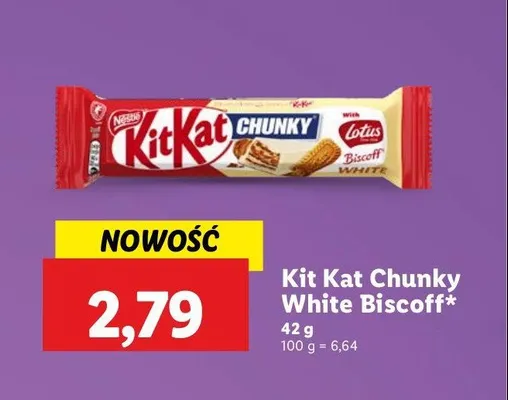 Ile kosztuje Baton biscoff white Kitkat chunky?