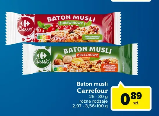 Ile kosztuje Baton musli z żurawiną Carrefour classic?