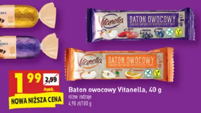 Ile kosztuje Baton owocowy jab艂kowo-gruszkowo-pomara艅czowy Vitanella?