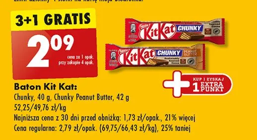 Zastanawiasz si臋, gdzie kupi膰 i ile kosztuje produkt Baton pop corn Kitkat chunky? Regularnie sprawdzamy, czy jest promocja na ten produkt w Biedronka, Lidl, Kaufland, Auchan, Netto, Makro i innych sklepach. Aktualnie posiadamy 2 oferty promocyjne na ten produkt. Ceny zaczynaj膮 si臋 od 2,85z艂!