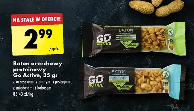Ile kosztuje Baton proteinowy z orzechami ziemnymi i pistacjami Go active?