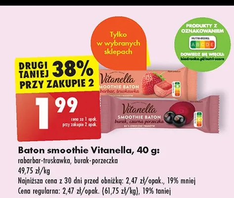 Ile kosztuje Baton smoothie rabarbar-truskawka Vitanella?