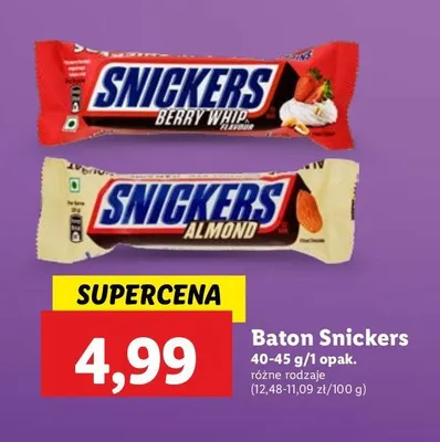 Cena produktu r贸偶ni si臋 w zale偶no艣ci od wybranego sklepu. Niestety nie posiadamy danych o aktualnych promocjach, jednak w艣r贸d archiwalnych ofert Baton Snickers berry whip kosztuje od 4 z艂 do 7,99 z艂.