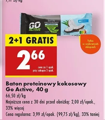 Baton wysokobia艂kowy kokosowy Go active promocje w sklepach - znajd藕 ofert臋 dla siebie!
