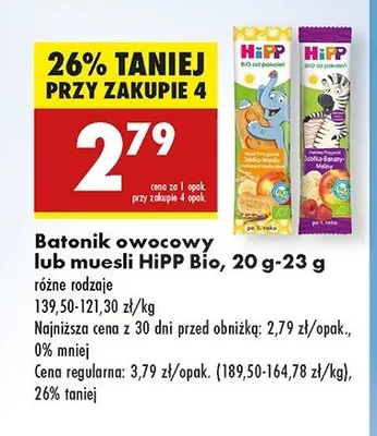 Ile kosztuje Batonik bio jab艂ko-wi艣nia z ma艣lanymi ciasteczkami HIPP MUSLI PRZYJACIEL?