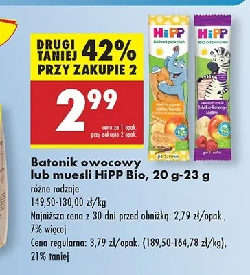 Ile kosztuje Batonik jab艂ka-banany-maliny Hipp owocowy przyjaciel?