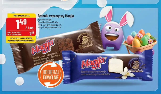 Gdzie mo偶na tanio kupi膰 produkt Batonik z masy twarogowej z kawa艂kami czekolady w polewie kakaowej Magija?