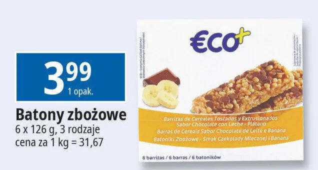 Ile kosztuje Batonik zbożowy z kawałkami czekolady mlecznej i bananami Eco+?