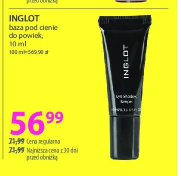 Cena produktu r贸偶ni si臋 w zale偶no艣ci od wybranego sklepu. Niestety nie posiadamy danych o aktualnych promocjach, jednak w艣r贸d archiwalnych ofert Baza pod cienie do powiek Inglot kosztuje od 46,99 z艂 do 56,99 z艂.