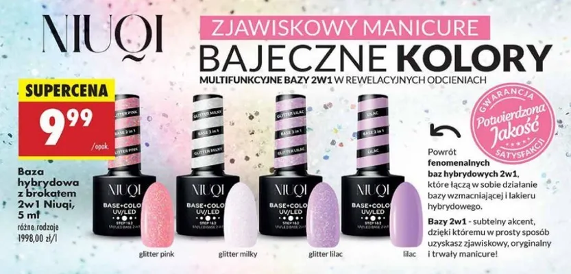 Cena produktu r贸偶ni si臋 w zale偶no艣ci od wybranego sklepu. Niestety nie posiadamy danych o aktualnych promocjach, jednak w艣r贸d archiwalnych ofert Baza uv/led lilac Niuqi kosztuje od 9,99 z艂.