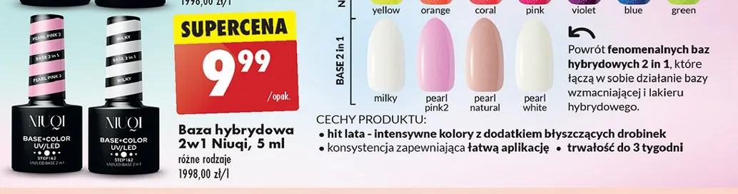 Cena produktu r贸偶ni si臋 w zale偶no艣ci od wybranego sklepu. Niestety nie posiadamy danych o aktualnych promocjach, jednak w艣r贸d archiwalnych ofert Baza uv/led pearl white Niuqi kosztuje od 9,99 z艂.