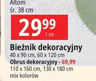 Cena produktu r贸偶ni si臋 w zale偶no艣ci od wybranego sklepu. Niestety nie posiadamy danych o aktualnych promocjach, jednak w艣r贸d archiwalnych ofert Bie偶nik dekoracyjny 60 x 120 cm kosztuje od 29,99 z艂.