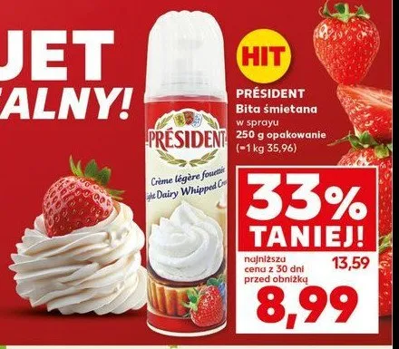 Bita 艣mietana w sprayu President promocje w sklepach - znajd藕 ofert臋 dla siebie!