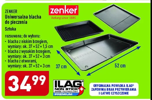 Ile kosztuje Blacha do pieczenia rozsuwana z niskim brzegiem 37 x 52 x 1.5 cm ZENKER?