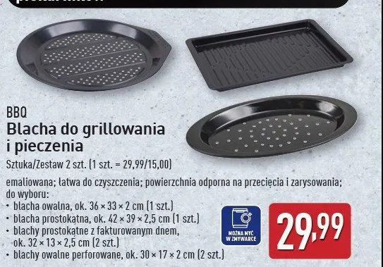 Cena produktu r贸偶ni si臋 w zale偶no艣ci od wybranego sklepu. Niestety nie posiadamy danych o aktualnych promocjach, jednak w艣r贸d archiwalnych ofert Blacha owalna 36 x 33 x 2 cm Bbq kosztuje od 29,99 z艂.