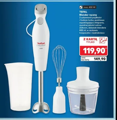Cena produktu r贸偶ni si臋 w zale偶no艣ci od wybranego sklepu. Niestety nie posiadamy danych o aktualnych promocjach, jednak w艣r贸d archiwalnych ofert Blender 450 w Tefal kosztuje od 119,9 z艂.