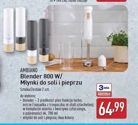 Cena produktu r贸偶ni si臋 w zale偶no艣ci od wybranego sklepu. Produkt Blender r臋czny 800w AMBIANO mo偶esz kupi膰 w promocji ju偶 od 39,99 z艂 do 79,2 z艂. Najta艅sza oferta, jak膮 mamy w naszej bazie jest z sieci Netto. Blender r臋czny 800w AMBIANO kosztuje aktualnie 39,99 z艂. Zobacz ofert臋