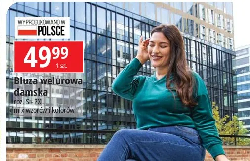 Nie wiesz gdzie kupi膰 produkt Bluza damska welurowa w promocji? Aktualnie produkt Bluza damska welurowa znajduje si臋 w atrakcyjnej cenie w sklepach Selgros. Opr贸cz tego produkt mo偶na kupi膰 w innych sklepach, jednak aktulanie nie posiadamy informacji o promocjach w nich.