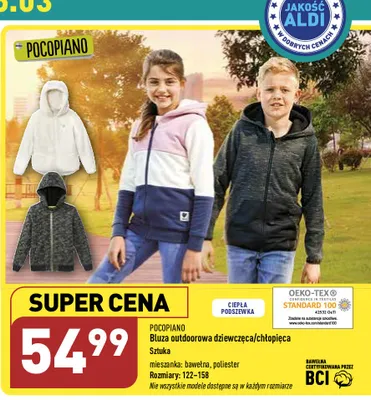 Cena produktu r贸偶ni si臋 w zale偶no艣ci od wybranego sklepu. Niestety nie posiadamy danych o aktualnych promocjach, jednak w艣r贸d archiwalnych ofert Bluza outdoorowa dziewcz臋ca 122-158 Pocopiano kosztuje od 54,99 z艂.