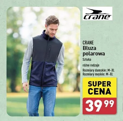 Cena produktu r贸偶ni si臋 w zale偶no艣ci od wybranego sklepu. Produkt Bluza polarowa m臋ska CRANE mo偶esz kupi膰 w promocji ju偶 od 39,99 z艂. Najta艅sza oferta, jak膮 mamy w naszej bazie jest z sieci Aldi. Bluza polarowa m臋ska CRANE kosztuje aktualnie 39,99 z艂. Zobacz ofert臋