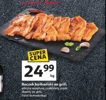 Przeglądaj podobne oferty promocyjne do Boczek bałkański na grill Auchan różnorodne (logo czerwone)!