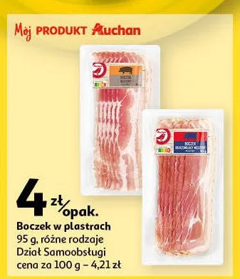 Boczek w臋dzony plastry Auchan promocje w sklepach - znajd藕 ofert臋 dla siebie!