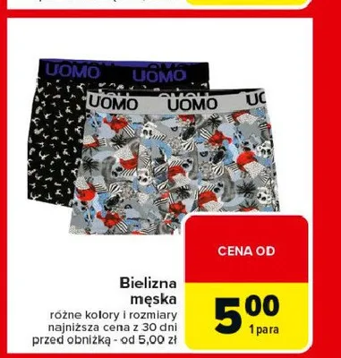 Cena produktu r贸偶ni si臋 w zale偶no艣ci od wybranego sklepu. Niestety nie posiadamy danych o aktualnych promocjach, jednak w艣r贸d archiwalnych ofert Bokserki m臋ski Uomo kosztuje od 5 z艂 do 10 z艂.
