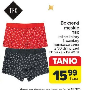 Cena produktu r贸偶ni si臋 w zale偶no艣ci od wybranego sklepu. Niestety nie posiadamy danych o aktualnych promocjach, jednak w艣r贸d archiwalnych ofert Bokserki m臋skie Tex kosztuje od 15,99 z艂.