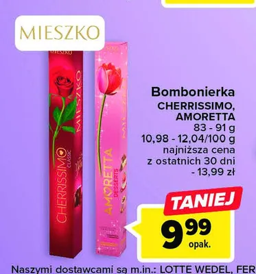 Nie wiesz gdzie kupi膰 produkt Bombonierka desserts s艂up Mieszko amoretta w promocji? Aktualnie produkt Bombonierka desserts s艂up Mieszko amoretta znajduje si臋 w atrakcyjnej cenie w sklepach Chorten, Carrefour, Carrefour Market, ABC, Euro Sklep, Groszek, Dealz. Opr贸cz tego produkt mo偶na kupi膰 w innych sklepach, jednak aktulanie nie posiadamy informacji o promocjach w nich.