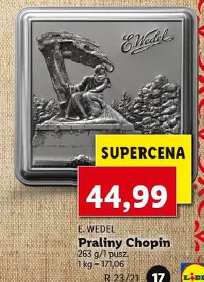 Zastanawiasz si臋, gdzie kupi膰 i ile kosztuje produkt Bombonierka - puszka E. wedel chopin? Regularnie sprawdzamy, czy jest promocja na ten produkt w Biedronka, Lidl, Kaufland, Auchan, Netto, Makro i innych sklepach. Aktualnie nie posiadamy ofert promocyjnych na ten produkt.